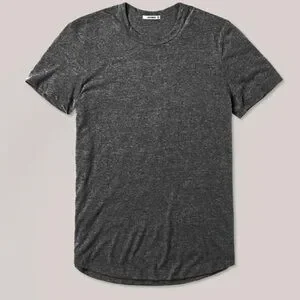The Buck Mason Curve Hem Tee in Heathered Gray is a classic men's crewneck short sleeve shirt made in the USA. This designer tee is crafted from a blend of polyester, rayon, cotton, and cotton blend jersey fabric, offering comfort and stretch for all seasons.