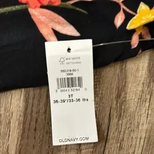 Dress your little one in this adorable three-piece mix-and-match set featuring a vibrant floral Old Navy dress, comfortable Gap denim shorts, and sweet patterned leggings. The dress is brand new with tags, showcasing a stunning tropical floral print on a black background with a playful ruffled hem. Paired with the classic elastic-waist denim shorts and soft floral leggings, this versatile bundle offers endless outfit possibilities for a busy toddler. This set is in great condition, with the dress being NWT and the bottoms gently used. Perfect for a family picnic, a birthday party, or a fun day at the park.