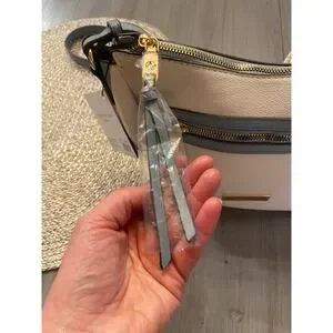 Keywords: handbag, crossbody, shoulder bag, beige, blue, womens accessory, fashion, stylish, everyday bag, travel bag, zippered pockets, tassel accent, new with tags