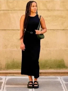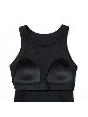 tags: ribbed bra dress black, racer tank dress, bodycon ribbed dress, fitted sleeveless dress, cotton spandex dress, support molded cups dress, casual little black dress, stretchy rib midi dress, contouring rib dress, summer black dress sleeveless, layerable black dress, fitted ribbed midi