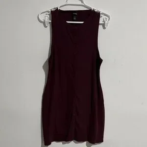 Women's Sleeveless Button-Front Ribbed Mini Skater Dress - Wild Fable™ Maroon