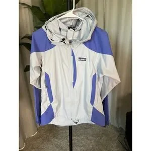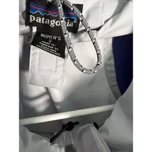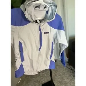 Patagonia Womens Small Colorblock Hooded Windbreaker Jacket Grey Blue Full Zip