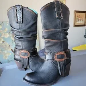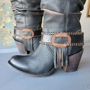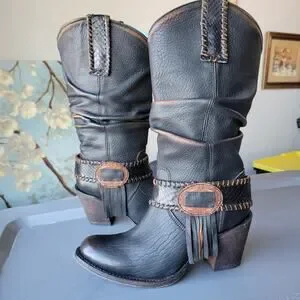 Corral Ladies Brown Fringe Slouch Boots Size 6.5M