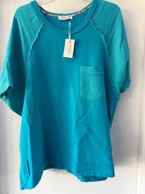 Umgee Teal Short Sleeve Pocket Top