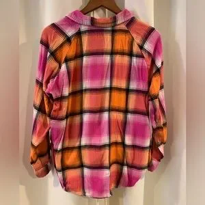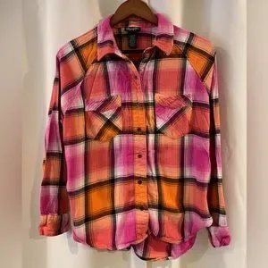 Wrangler Retro Shirt Women's Medium Multicolor Plaid Button Up Long Sleeve