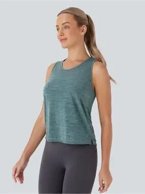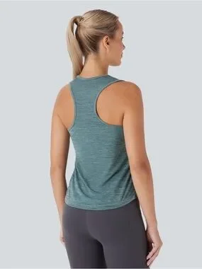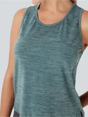 Halara Racerback Hem Hiking Tank Top in a beautiful green textured fabric — the perfect lightweight active top for everyday wear.