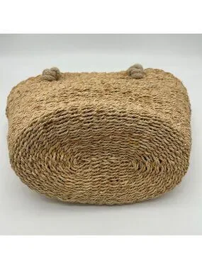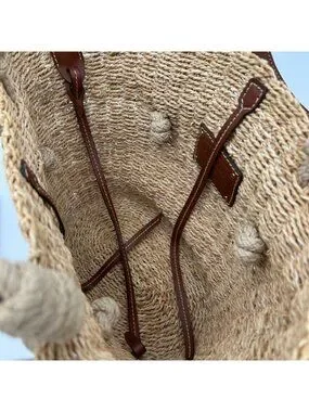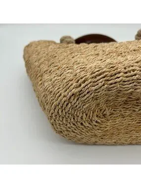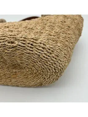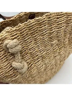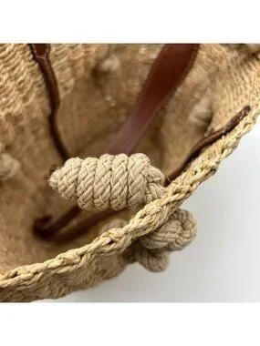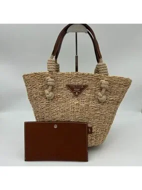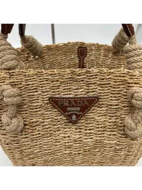 Name: Beige basket bag made of straw material with Prada triangle logo