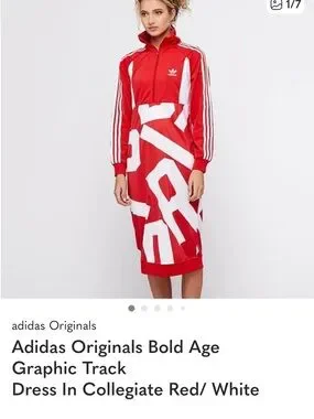 Adidas BOLD AGE track suit maxi Red & White Dress pockets