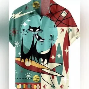 Dress Shirt Size 2Xl Men Hawaiin 50’s Style Button Down Bowling Shirt new other sizes available choose option