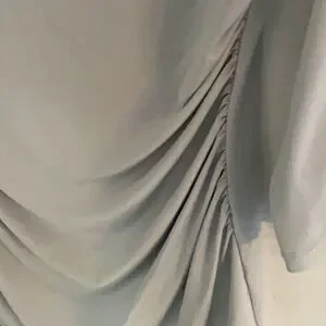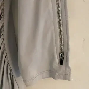 Elevate your “desk-to-dinner” style with this stunning Cache long sleeve blouse. Featuring a sleek gray and silver shimmer, this piece is accented with edgy silver-toned zipper details for a modern, sophisticated look. The fabric offers a comfortable slightly fitted silhouette that pairs perfectly with tailored trousers or dark denim. Features full zipper details on long sleeves and ruching on the sides. It’s in a size M with measurements of about 18” from pit to pit lying flat, about 28” in the length and about 19” in the sleeve length. The fabric is 91% polyester and 9% spandex. This blouse is in good condition.