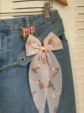 This skirt features delicate handmade charm embellishments along the waist and a soft floral bow detail for a feminine, modern touch 🌸 Each charm was carefully added by hand, making this piece truly unique and impossible to find anywhere else.