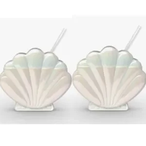 Sun Squad Tumblers Shell Shaped Iridescent With Straws Set of Two NWT