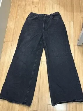 AGOLDE Jeans Women’s 31 x 32 Black Denim Dame High Rise Wide Leg Organic Cotton