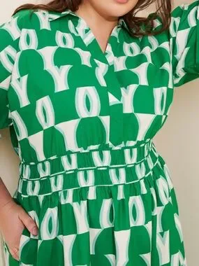 This is that throw-on-and-feel-amazing dress. Bold green print, easy silhouette, and just enough structure to feel put together without trying.