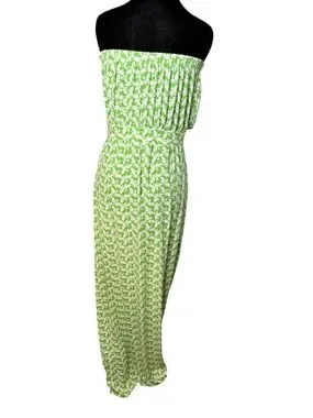Boho, Preppy, Resortwear, Vacation, Summer, Tropical, Bee Print, Lagenlook, Coastal, Casual, Travel, Lilly Pulitzer Buzzworthy Dress, Green Bee Print Maxi, Strapless Summer Dress, Pockets, Size Medium, @pjsreclaimed.