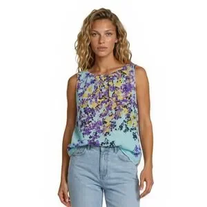 Keywords: Silk Shell, Floral Print, Petite Fashion, Garden Party, Office Wear, Summer Blouse, Bright Colors, Luxury Fabric, Classic Style, Feminine, Watercolor Floral, Lightweight, Breathable