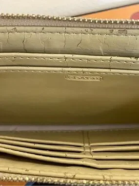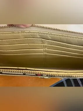 Condition: some chipping/peeling on interior leather as pictured. Exterior is pristine. Just some slight wear on clip and zipper pull that is barely noticeable. Please see photos for additional condition details.