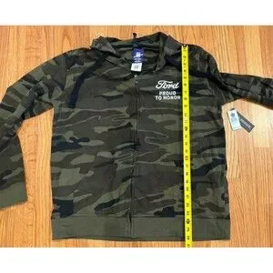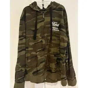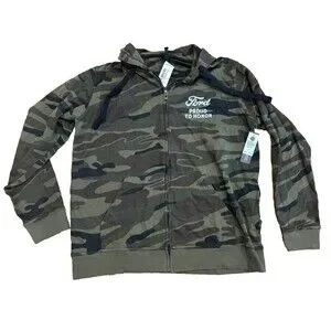 Ford Hoodie Men's Size Large Full Zip Sweatshirt Green Camo Proud to Honor NWT