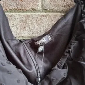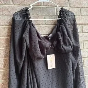 ew with tags Missguided Plus dress in a classic black Swiss dot fabric. It's got sheer long sleeves with a bit of volume, a lined body, and a flattering flowy cut. Tag says UK 24, which is a US size 20.