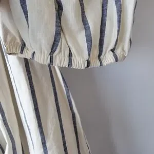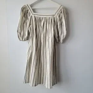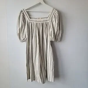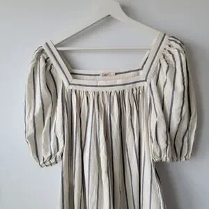 Faherty womens Phoenix Elroy Stripe Dress sz m Cotton Square Neck Puff Sleeve