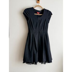 Kirna Zabete Dress - Charcoal Gray Pleated Fit Flare w/ Black Mesh Trim Zip Up (size 4)