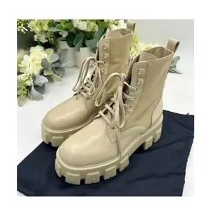 Step out in style with these chic beige lace-up chunky boots. Perfect for adding a bold touch to any outfit. absolutely brand new never worn originally over $1500. Comes with dust bags however I do not have the box.