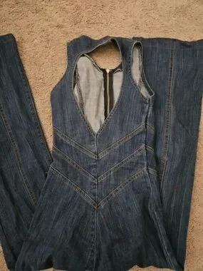REVICE Indigo Blue Denim Flare Heart Jumpsuit