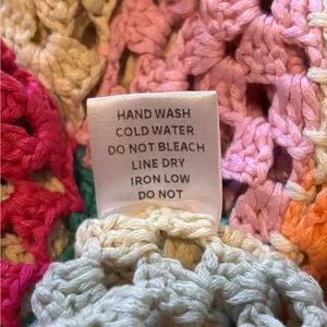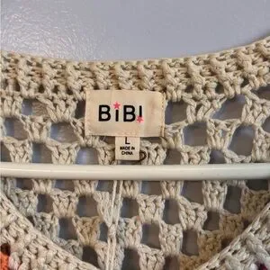 BIBI Multicolor Crochet Patchwork V-Neck Sweater Sz L PTP 21”. NWT