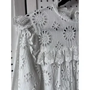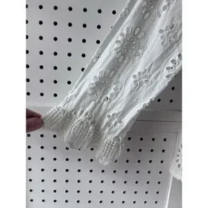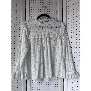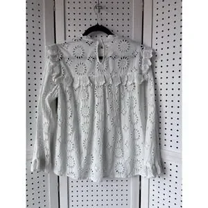 Zara Woman M White Ruffle Eyelet Boho Long SLV Top Shirt Blouse