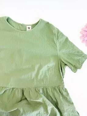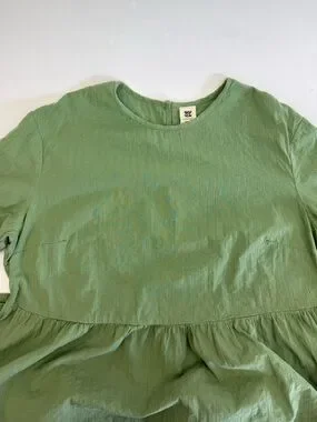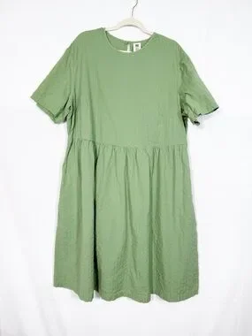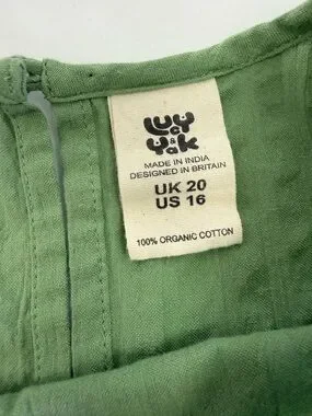 EUC Lucy & Yak Mia Cotton Midi Dress Garland Sage Green Seersucker Lagenlook Boho.