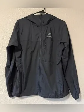 Arc'teryx Squamish Hoody, Arc'teryx windbreaker women, lightweight shell jacket, packable windbreaker, outdoor jacket women, hiking jacket, climbing shell, minimalist activewear, gorpcore jacket, technical outerwear, black windbreaker, water resistant jacket, performance shell, athleisure outerwear