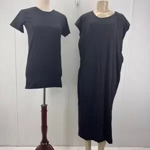 Bundle OAK Side Pleat Box Maxi Dress & Tube Tee Black Cotton XS/S Basic Neutral