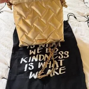 Gold Quilted Crossbody Bag with Multicolor Gem Accents. Not available anywhere.