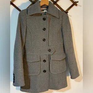 J Crew Women Gray Wool Blend Peacoat Belted Pockets Size 4 EUC