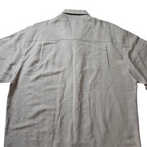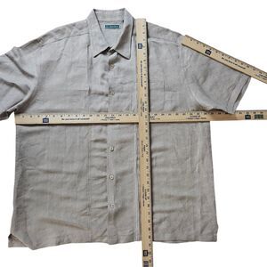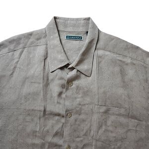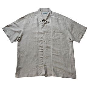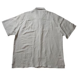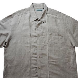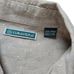 Cubavera Linen Rayon Camp Shirt Mens 2XL Beige Embroidered Panel Short Sleeve