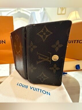 Close-up of Louis Vuitton monogram canvas with a gold-tone round snap. Textured canvas and visible logo engraving on the hardware. Classic hardware accent highlights brand signature. This beautiful wallet can be used. Versatile can be used as a Crossbody. Beautiful condition does have a little necks on the corner, but it is very well. Taken care of add a little of glamour and Lux to your life. All sales are final no exchange no return returns.