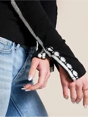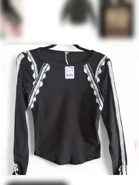 Free People Lost Love Black Embroidered Long Sleeve Top Boho Western S NWT