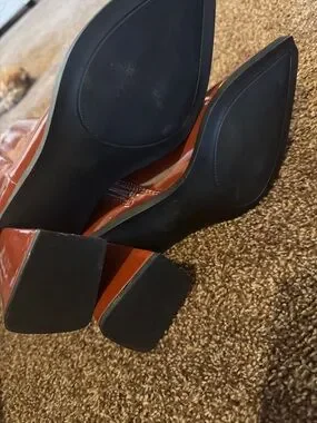 Nordstrom Rust-Red Patent Pointed Toe Block Heel Ankle Boots
