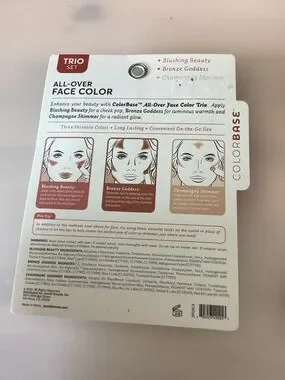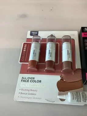 All-Over Face Color Trio in Blushing Beauty. Creamy, blendable sticks for eyes, cheeks and lips. Delivers natural pink and bronze tones for a fresh, radiant look. Buildable color that blends easily for day or night wear. Please see pictures of all 4 items