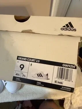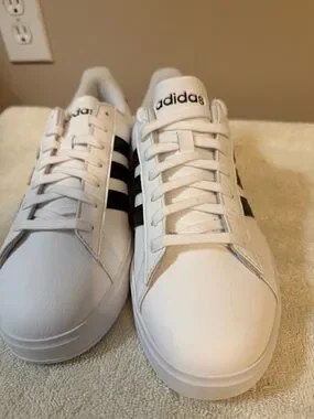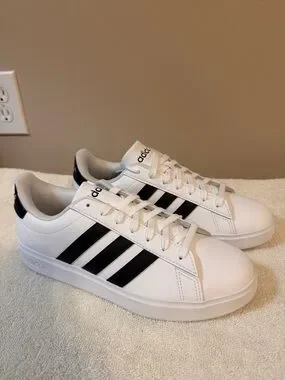 adidas Grand Court 2.0 White Sneakers with Black Three-Stripes