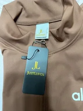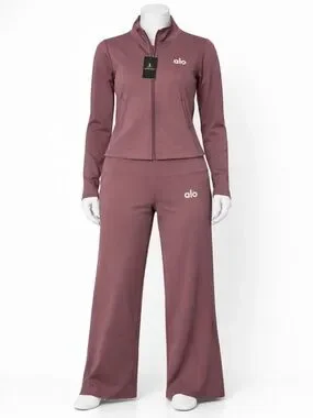 Includes zip-up jacket + high-waisted pants.