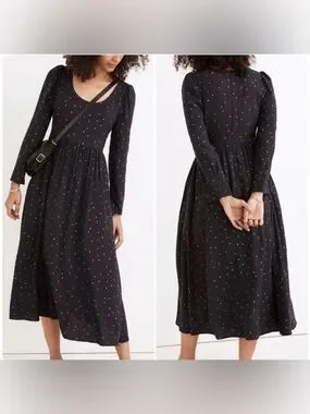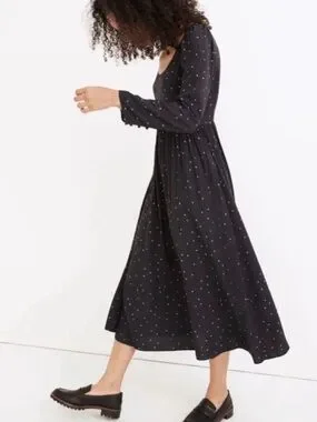 FIRM Madewell Alicia Long-Sleeve Scoop Neck Midi in Night Stars Polka Dot Medium