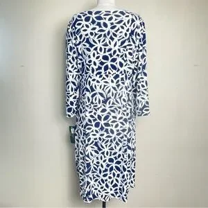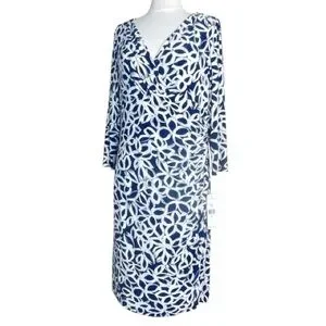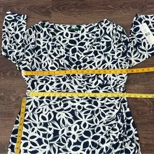 NWT Lauren Ralph Lauren White & Blue Dress | Ruched Faux Wrap V-Neck | 16