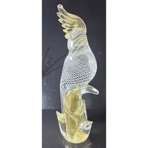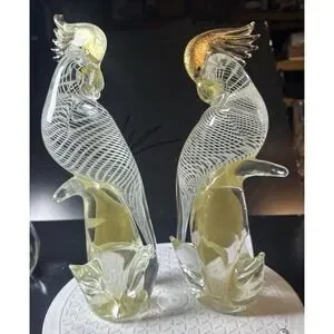 A set of 2 beautiful cockatiel blown glass figures made by the Formia Company in Venice, Italy. Filigrana spiral body with gold leaf incisions in the head/crest area. The sticker confirms this is vintage Murano glass from Italy. These pieces will be very well packed (please see my reviews).