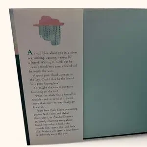 A small blue whale sits in a silver sea, wishing, wanting, waiting for a friend. Waiting is hard, but he doesn’t mind; he’s sure a friend will be worth the wait.