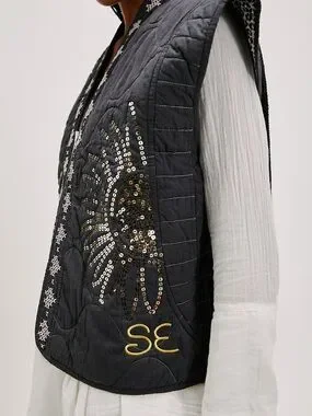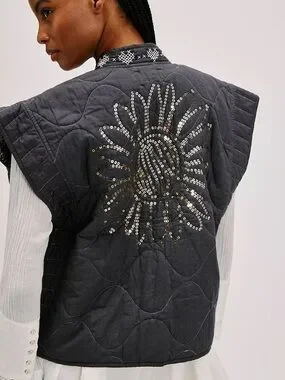 Free People x Sissel Edelbo Quilted Jacket Sequin Sun Boho Kimono Sold Out NWOT