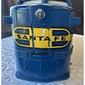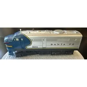 The Lionel O Gauge 8351 Blue Santa Fe Blue Bonnet Diesel Engine is a vintage model replica of a Santa Fe locomotive from 1973. This pre-built ready-to-go train features a blue color scheme with light function, making it a charming addition to any model railroad collection. With a 1:48 scale and analog control system, this diesel locomotive is a classic piece of transportation-themed memorabilia for enthusiasts of model trains and vintage toys. Made of plastic and featuring a Bo-Bo wheel configuration, this locomotive is a nostalgic tribute to the Santa Fe Southern Railway.