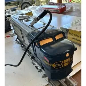 Excellent condition. The decal on the front of the engine is cut in two spots. The pin-striping, letters and numerals are all intact and nice. Tested, lights and engine work. Needs a good cleaning and maintenance. Please see photos.