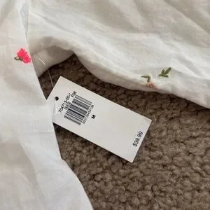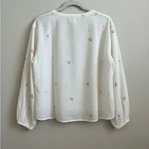Description: Brand new with tags! This gorgeous ivory peasant blouse features delicate floral embroidery on the sleeves and a flattering, flowy silhouette. Perfect for that effortless "Parisian chic" spring look.