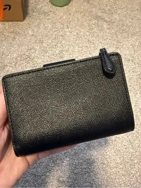 Coach wallet in black cross grain leather and gold details. Only used about a week and decided I don’t like it.
